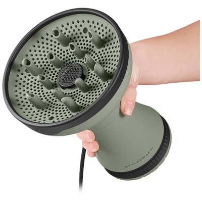 Engineered for curly and coily hair, the StyleCraft 2-in-1 Sage Diffuser Hair Dryer is an essential part of a perfect curl-defining ritual. Crafted to work with unique textures, it helps reduce frizz while boosting the inherent shape and bounce of curls. The Curl Boosting System works in harmony with hair, delivering even air distribution that dries curls faster while helping them maintain their beautiful natural pattern. Infused with Ceramic Argan Oil Technology, the built-in diffuser also hydrates as it dries, locking in moisture and enhancing shine for healthy, luminous curls that seem to glow from within. Built with an ion generator, it releases negative ions that start smoothing at the cuticle level, sealing in moisture and eliminating frizz for silky hair that’s easy to style.
